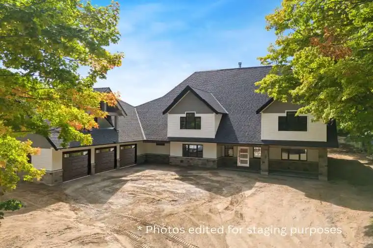 MUST BE SEEN: Exquisite 5500+ square foot custom-built luxury modern farmhouse home with panoramic country views. This home is filled with thoughtful details and offers a feeling that needs to be experienced in person. Top features: Private moonroof patio wired for hot tub, gas line for fire table, and panoramic views, two master bedroom suites including main-floor primary suite with gas fireplace, two- storey genuine limestone wood-burning fireplace with live-edge mantel, massive kitchen with 10 ft showstopper island showcasing waterfall-tiered quartz countertops and gas range, stunning natural hickory hardwood flooring, extra deep 3-car garage, and a large loft space with separate entrance with excellent potential for a studio, home office, or guest suite. Don’t miss the opportunity to make this exceptional property your own!