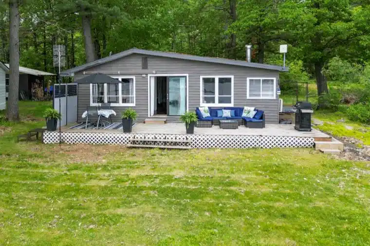 Only a few minutes by boat from local marinas in Honey Harbour and you are at this 4 bedroom cottage on Robert’s Island. You will appreciate the nice open living area that wraps around the side of the cottage. Several recent updates have been done including new flooring throughout, pine ceilings with pot lights in the living area, a ductless split unit for heating and cooling and a new dock. The kitchen has been renovated to include a new oversized sink and new countertops, as well as the installation of a dishwasher and all new appliances. There’s even a washer and dryer to manage your laundry needs. The airtight woodstove will keep you quite warm in the cottage during the cooler months in the spring and fall. The small aluminum boat may be included. Due to the zoning bylaws, the neighbouring property can not have a cottage built on it, making that side quite private.