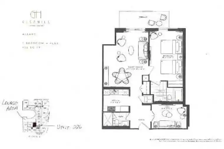 Live at one of the most luxurious buildings in Toronto managed by The Forest Hill Group. This one of one floorplan overlooks the outdoor BBQ lounge common area with direct from the unit Terrace gate access. North facing new never lived in One bedroom and seperate room den 932 sq ft per builders floorplan plus terrace, one parking spot, one locker, all engineered hardwood / ceramic / porcelain and marble floors no carpet, marble floor and tub wall tile in washroom, upgraded stone counters, upgraded stone kitchen backsplash, upgraded kitchen cabinets, upgraded Miele Appliances. Next door to Bialik Hebrew Day School and Synagogue, building and amenities under construction to be completed in Spring 2026, 23 room hotel on site ( $ fee ), 24 hr room service ( $ fee ), restaurant ( $ fee ) and other ground floor retail – to be completed by end of 2026, Linear park from Glencairn to Hillmount – due in 2027. Landlord will consider longer than 1 year lease term.