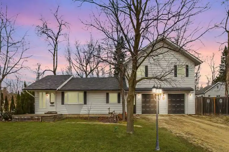 Welcome to 13 Belcher Street, your private Georgian Bay escape. Set on an expansive 100′ x 170′ treed lot, this beautifully updated 3-bedroom multi level home offers the perfect blend of peace, privacy, and convenient access to Collingwood, Blue Mountain, and Wasaga Beach. Just steps from the water’s edge, this property truly delivers four-season living. The bright, open-concept main floor is ideal for entertaining, with vaulted ceilings, large windows that fill the space with natural light, and a gas fireplace shared between the living and dining areas. The kitchen features a built-in oven, stainless steel appliances, and a walkout to a spacious back deck overlooking lush gardens and a tranquil pond. This level also includes a bedroom, a home office/den, a 3-piece bath, a laundry room, and access to the attached garage.Upstairs, you’ll find two generous bedrooms, including a primary suite with a versatile den/walk-in closet (perfect as a nursery or office) and a 4-piece bath. Recent upgrades include a new furnace, new washer/dryer, and enhanced landscaping. The double garage offers a workshop area, and the driveway provides parking for up to six vehicles. Enjoy morning coffee on your private deck, wander down the street to the beach, or explore nearby shops, restaurants, and trails. Move-in ready and ideal as either a year-round home or a weekend retreat.