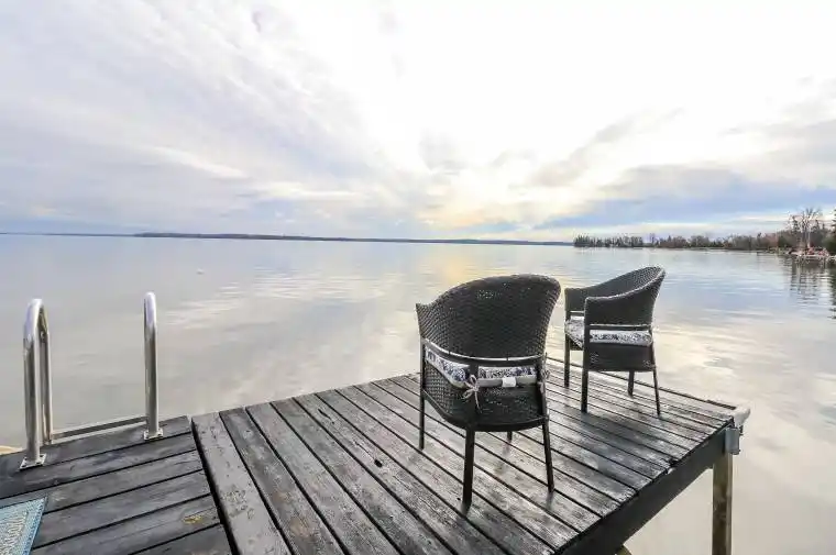 A Custom-built waterfront home (2010) along the shores of Lake Simcoe in Innisfil awaits! Offering 2,580 sq. ft. with 4 bedrooms and 4 bathrooms, this property showcases stunning lake views of the throughout. Enjoy the ultimate boater’s and lake lifestyle with a dry boathouse ready for a marine rail system, boat lift, and private dock. The Open concept Main Floor creates a perfect place to relax or gather and entertain friends and family. Wake up to incredible sunrises from the Primary bedroom and views of both Fox and Snake Island. Attached is a 53′ oversized garage that spans the length of the home-ideal for storing boats, vehicles, or recreational toys. Perfect for year-round living or a weekend retreat, this property combines comfort, functionality, and waterfront luxury. Conveniently located just minutes to Innisfil’s shops, dining, and amenities. A must-see for anyone looking for life on Lake Simcoe who are boaters and outdoor enthusiasts!