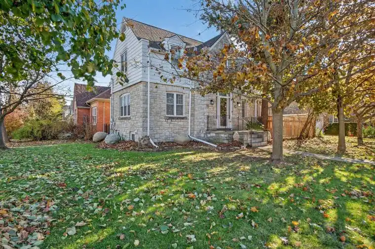 Welcome to this beautiful limestone home, showcasing timeless curb appeal and pride of ownership throughout. This well-maintained three-bedroom residence offers a thoughtful blend of tasteful updates and classic character. Each room features windows on multiple walls, providing abundant natural light throughout the home.The main floor features a warm and inviting living room, complete with a cozy fireplace, along with a renovated kitchen that was updated with quality finishes in approximately 2005. The home’s professionally designed addition – created by Gervan & Associates – includes a bright four-season sunroom that provides additional living space year-round and opens to a private interlocking brick courtyard. This low-maintenance outdoor retreat is perfect for entertaining or relaxing, further enhanced by an in-ground irrigation system that keeps the landscaping effortless and lush. Upstairs, you will find three comfortable bedrooms, including one with access to a flat-roof patio, offering a charming spot to enjoy your morning coffee or unwind at the end of the day. The finished basement adds valuable extra living space, ideal for a family room, home office, or gym.A detached one-and-a-half-car garage adds convenience and additional storage. Located just a short walk from the highly regarded Winston Churchill Public School, this home combines classic charm, practical living, and an unbeatable location.