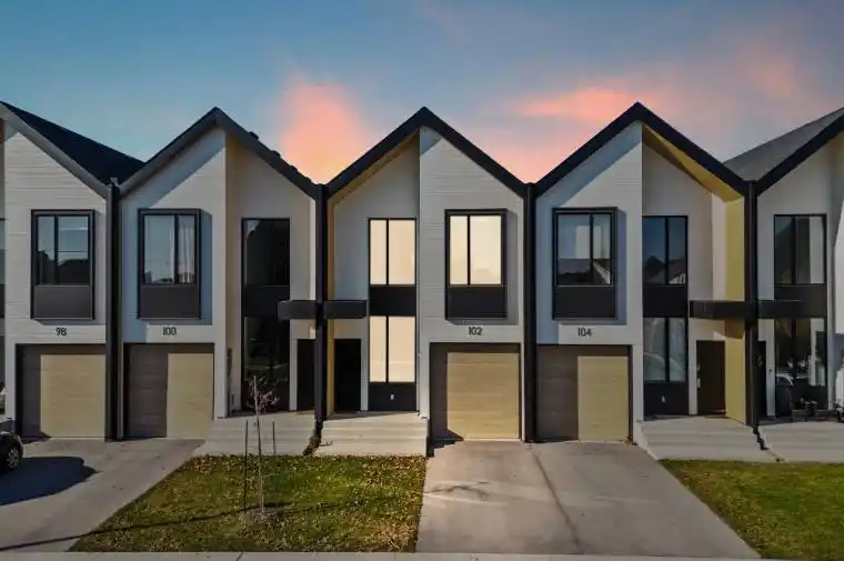 Step into this stunning Scandinavian-inspired townhome, where a bright entranceway with massive windows fills the home with natural light. Wide-plank white oak floors flow throughout the main level, leading to a striking open staircase with sleek wrought-iron spindles that serves as an architectural centerpiece. The open-concept living area features upgraded 9-foot ceilings and a feature wall with an elegant electric fireplace, creating a warm and sophisticated gathering space. The modern kitchen is a chef’s dream, offering premium cabinetry, stainless steel appliances, and sleek quartz countertops. Upstairs, the second floor is designed for comfort and style. The spacious primary suite boasts a luxurious spa-inspired bathroom with a grand walk-in shower featuring floor-to-ceiling tile and a floating vanity. Two additional bedrooms each feature double closets and share a beautifully appointed full bathroom with a tub/shower combination and a floating vanity. A convenient second-floor laundry room completes the upper level. The backyard has just been finished and is completely maintenance-free, featuring a stone patio walkout, turf, and decking-perfect for entertaining, relaxing, or enjoying outdoor living without the hassle of upkeep. The unfinished basement offers 8-foot ceilings, providing ample storage and endless potential for future expansion or customization. This townhome perfectly combines Scandinavian design, high-end finishes, and thoughtful functionality, making it a truly exceptional place to call home.
