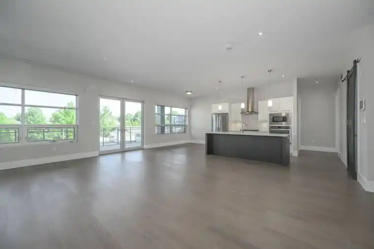 Perched in a quiet Richmond Hill cul-de-sac at North Point Lofts, this boutique high-rise offers 1950 sq. ft. of elevated living with the privacy of a residential setting and the convenience of exceptional proximity to LHSC, Western University, the shops and dining of Masonville Mall with an impressive Walk Score of 84, meaning most daily errands can be accomplished on foot. Inside, soaring 10-foot ceilings and expansive windows fill the open-concept interior with natural light. This residence claims the building’s largest balcony, a remarkable 550 sq. ft., glass-panel enclosed with a BBQ hookup creating a seamless extension of your living space for entertaining or private outdoor retreat. The solid wood double-door entry opens to a living room anchored by a striking floor-to-ceiling tile-surround gas fireplace, complemented by rich hardwood flooring. The kitchen blends style and function with stainless steel appliances, marble surfaces, sleek white cabinetry, pendant lighting, and an island with seating. Two private bedroom suites each offer a spa-inspired ensuite with marble surfaces and custom-built closets. A discreet laundry area is tucked behind a sliding barn door, offering additional built-in storage, while a stylish powder room serves guests. For security and peace of mind, a multi-camera system provides real-time views of the entry, lobby, and more directly from your unit. One underground parking space and a storage locker in the temperature-controlled garage complete this rare offering in one of London’s most desirable addresses.