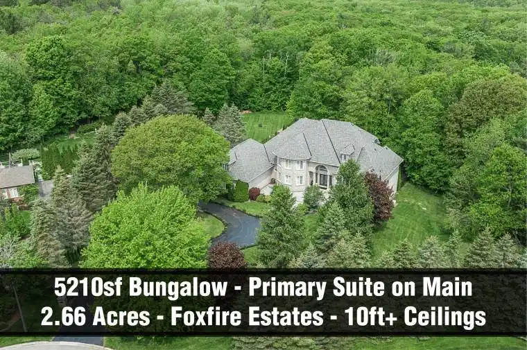 Enjoy an elevated lifestyle in this 5210sqft (8258sf of living space) 4+2 Bedroom custom, stone BUNGALOFT estate with soaring ceilings, main floor Primary Suite, finished walk-out Basement, Smart Home technology, and huge unfinished Storage Loft over the 3 car Garage. This majestic 2.66 acre private forested, west exposure property is nestled high at the end of a quiet court in prestigious Foxfire Estates that is conveniently located within minutes to downtown Uxbridge. Experience palatial living with breathtaking architecture, soaring ceilings of 10-20ft main floor ceilings, 9ft second floor and 9.6ft basement ceilings. This exceptional design with exquisite finishings offers numerous walkouts to the expansive west side multiple floor balconies. The coffered up to 12 main floor Primary Suite wing, features gas fireplace, W/O to covered deck, his & her W/I closets, 6pc ensuite and access to the main floor Office/nursery. The open concept Kitchen with centre island, quartz counters, W/I pantry and spacious Breakfast Area offers a W/O to the expansive covered deck. The large Family room boasts window seats, waffle ceiling and gas fireplace. The exquisite 20ft, 2-storey Living Room with floor to ceiling gas fireplace and oversized windows is open to the Grand Foyer. The formal Dining Room presents coffered ceiling, B/I speakers and numerous windows. The 2nd floor Loft with floating Hallway offers 3 Bedrooms with ensuites and two Bedrooms with balconies. The prof fin W/O basement show cases an In-Law Suite, 3pc Bath, Sauna, custom stone climate-controlled Wine Cellar, Kitchen/service bar, gas fireplace, recreation, games area, gym, craft room and multiple-walkouts. Relax in the backyard oasis with inground pool, hot tub, prof. landscaping, firepit, large patio, pergola and natural forest. Located in “The Trail Capital of Canada,” 12 Deer Run offers the perfect balance of rural tranquility and quick access to shops, restaurants, amenities. ski hills and golf courses.