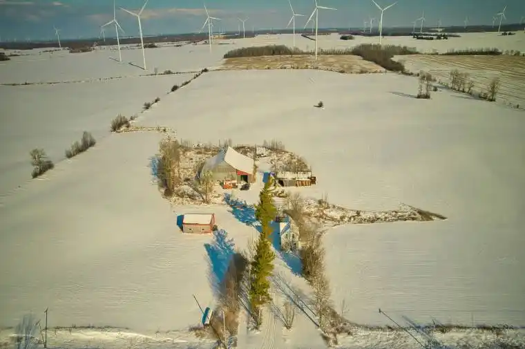 This 99.7 Acre farm has approximately 94 workable acres of organic farmland. There are some random drains through this farm that has a mix of Perth clay loam and Brookston clay loam. The house on the property has been vacant for many years and there is an older barn plus a couple of smaller outbuildings in the yard area. There is a wind turbine towards the back of the farm that provides income as well.