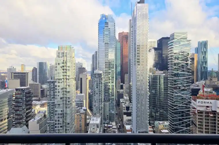 Downtown Toronto Living with Skyline Views! This high-floor 1-bedroom suite at The Bond Condos, Unit 3609, is bright with breathtaking east-facing views of the city skyline. Thoughtfully designed with an efficient layout and no wasted space, the unit features a cozy living area, modern kitchen with full-sized appliances, and floor-to-ceiling windows providing beautiful natural light. Start the day with a morning coffee on your large balcony. Enjoy the best of urban living-steps to the Financial District, transit, restaurants, shops, and entertainment. TTC access at your doorstep. Premium building amenities including a fitness centre, outdoor pool, party room concierge, and more.