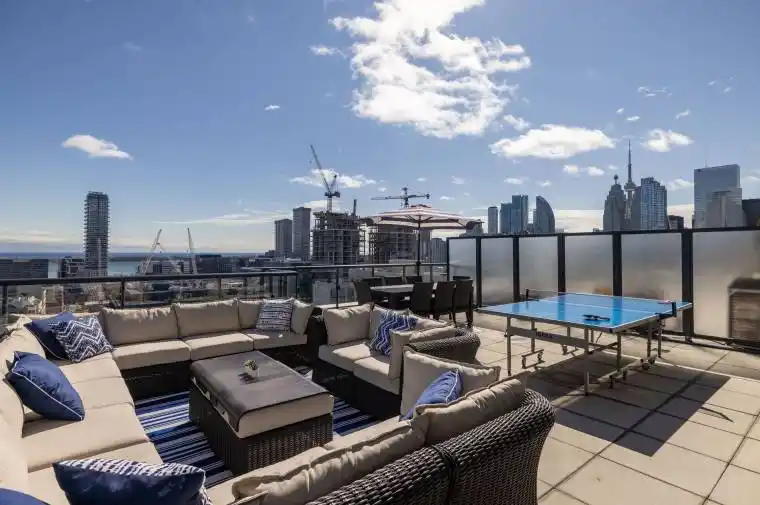 Welcome to the 400 Adelaide penthouse collection, this stunning condo that feels more like a home, with 9 foot ceilings featuring crown moulding and a lavish 700 sqft. Outdoor Terrace! Discover the allure of Ivory On Adelaide, Old Town Toronto’s hidden gem! This stunning penthouse boasts over 2,100 square feet of luxurious interior and exterior space, featuring an exclusive, massive south-facing terrace and two additional spacious balconies that wrap around the property. Bask in the sunlight that floods your beautiful eat-in kitchen, complete with sleek quartz countertops, abundant storage, and stainless steel appliances all over looking a large living and dining area with breathtaking views of the lake. The extraordinary primary bedroom is a true retreat, featuring a walk-in closet, access to a private balcony, and a lavish ensuite bathroom equipped with double sinks, heated floors, a separate jacuzzi tub and shower perfect for unwinding after a long day! The second and third bedrooms are generously sized, ideal for a queen bed, a large office, or a cozy nursery, and each boasts walkouts to the balcony and double closets. An additional 3-piece bathroom conveniently located off the hallway adds to the home’s functionality.This remarkable property also includes a prime parking spot, an oversized locker, and two bike storage spaces. With low maintenance fees covering water, this penthouse is not just a home; it’s a lifestyle waiting to be embraced! Freshly painted, just waiting for you to move in. Walking Distance To Restaurants, TTC, Scotiabank Arena, Union Station, Financial District, Distillery District, St. Lawrence Market, East End Film Studios. Prime location to access major highways DVP & Gardiner. Soon to be new Ontario Line Subway.