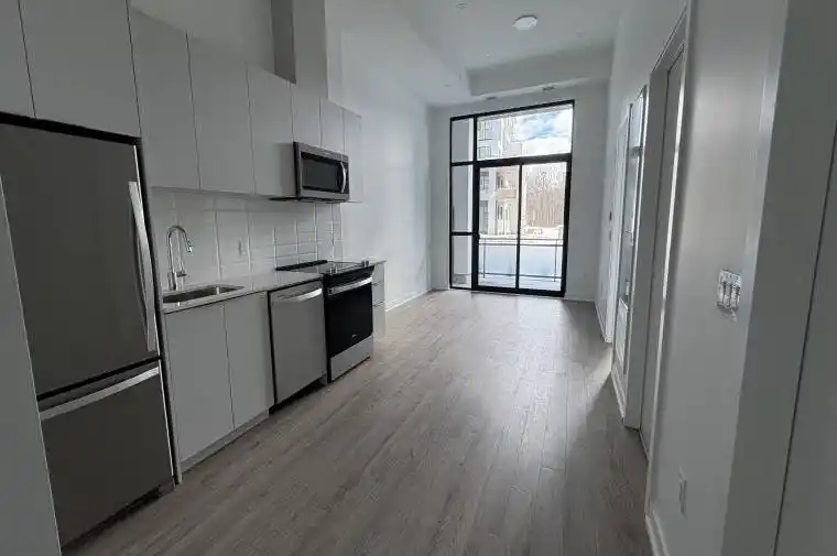 Brand new, never lived in 1 bedroom plus den suite at Mile & Creek Condos. Be the first to move into this brand new ground-floor one-bedroom residence featuring soaring 12′ ceilings and a rare 227 sq. ft. private patio that extends your living space outdoors. Internet included. This bright and spacious unit features thousands in upgrades, including a modern kitchen with soft-close cabinets and drawers, under-cabinet lighting, quartz countertop, backsplash, stainless steel appliances, pot lights, and high-end laminate flooring throughout. The upgraded bathroom offers a rimless glass stand-up shower, quartz vanity, and upgraded fixtures. Building amenities include a fitness center, media room, co-working space, social lounge, entertainment area, and an expansive rooftop terrace with BBQs, dining area, and fireside lounge. Additional features include, keyless entry, 24 hour concierge/security, pet spa, and smart home technology. Located in the most desirable area of Miltonm, close to schools, parks, transit and shopping. Move In Ready!