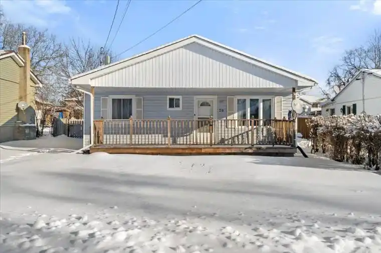 Charming 3-bedroom bungalow located on a quiet street, just minutes to the 401 – perfect for commuters seeking a peaceful setting. This inviting home features a cozy living room, a spacious renovated eat-in kitchen, and an updated 4-piece bath. Freshly painted throughout (excluding laundry room), with updated flooring and baseboards (2022). Comfort is enhanced with ductless heating and cooling units (2022), spray-foamed crawlspace for added insulation (2022), owned hot water tank (2020), vinyl windows(2019), and an upgraded 100-amp electrical panel. Enjoy the covered front porch and a private, well-treed 127′ deep backyard with two sheds. Ideal for first-time buyers or those looking to downsize.