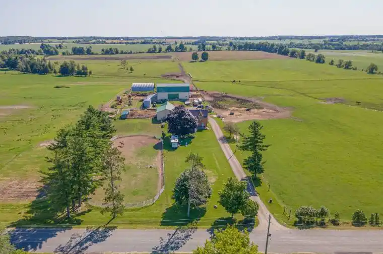 100 acre Farm for sale / 80 acres of workable land. Cash crop and livestock opportunities. Nicely maintained 4 bedroom, 2 bathroom farmhouse. Huge kitchen, family room with walk out to a 16 x 16 deck.Nice sized Primary bedroom has a walk in closet area. 2 more bedrooms on the upper floor, one bedroom on the main floor. Two, 4 piece bathrooms, one located on the main floor, and one on the upper floor. The home has a steel roof. 72 x 40 hip roof bank barn, complete with stalls, tack room, steel roof and concrete floors. 48 x 24 drive shed plus, a 32 x 32 addition with steel roof. 60 x 48 Quonset hut. 200 amp hydro to the barn and shed. Views for miles.
