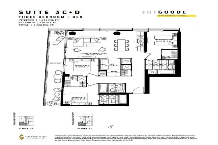 Assignment Sale. Buy for Less Than the Original Purchase Price. Exceptional opportunity to own a 3 bedroom + den and 3 bath Top Penthouse unit with South-West Exposure at The Goode in the historic Distillery District. This bright, spacious suite features 10ft 11inch ceilings, floor-to-ceiling windows, an open-concept living area, and a large private balcony with unobstructed views of the one of a kind Toronto Skyline. The units South-West exposure captures both sunrise and sunset! The well-designed layout offers outstanding privacy and functionality, ideal for families, professionals, and entertaining. Located steps from the St. Lawrence Market, waterfront, Corktown, Canary District, restaurants, walking distance to transit, and the upcoming Ontario Line. Residents enjoy premium amenities including a fitness centre, outdoor pool, co-working and study lounges, party room, games room, pet spa, BBQ terrace, and 24-hour concierge. Unit includes a locker and parking equipped with an EV charger. Don’t miss this rare chance to secure luxury living below the original purchase price in one of Toronto’s most vibrant neighbourhoods.