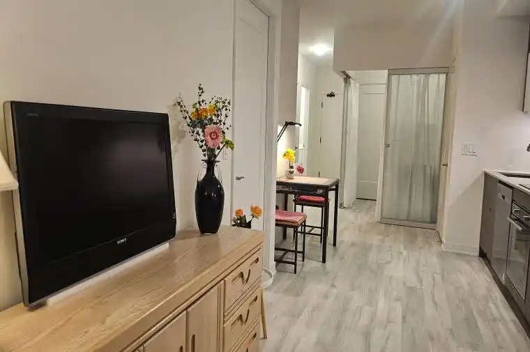 Well-located in the heart of downtown Toronto, Time and Space Condos. High-speed internet building. Monden style, open concept. 2 bedrooms 2 Bathrooms, plus a Den can be the third bedroom. This unit offers a spacious layout and a perfect blend of style and functionality, 9 Ft Smooth Ceilings, Quartz Countertops, and premium laminate flooring, ideal for professionals and couples. Excess Of Amenities Including Infinity-edge Pool, Rooftop Cabanas, Outdoor Bbq Area, Games Room, Gym, Yoga Studio, Party Room And More! Steps to the Financial District, Union Station, St Lawrence Mkt & Waterfront, TTC, College, Grocery shop and more, very convenient. All furniture in the unit can be left or vacated.