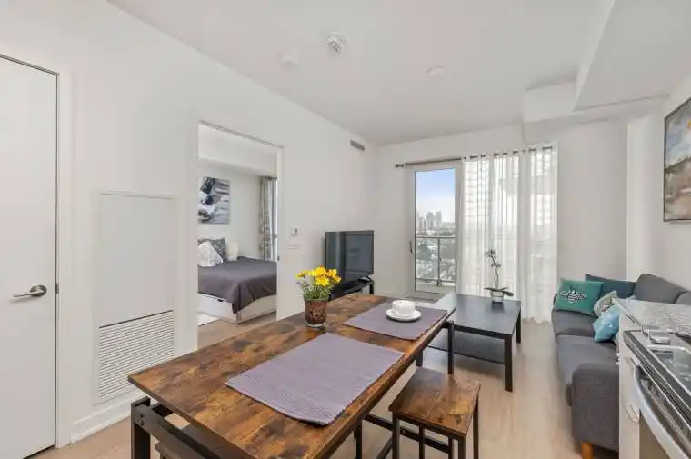 1 year old Condo With Luxurious Finishings 594 sq feet +100 sq feet luxury balcony. Conveniently Located At York Mills/DVP And TTC At Doorstep. Spacious One Bedroom Plus Den That Can Be Used As A Second Bedroom , or Office. Spacious Living/Dining Area With Great View. Modern Washroom. South Exposure. Minutes To Dvp, Fairview Mall, Grocery Stores.Ravine Living at Its Finest!Discover the perfect blend of nature, style, and urban convenience in this beautifully upgraded 1+1 bedroom condo with parking, nestled in the prestigious Ravine community. Condo features rare 10-ft ceilings for a spacious and airy feel.The open-concept kitchen is fully upgraded with quartz countertops, an enhanced stovetop, modern cabinetry, stainless steel appliances, and in-suite laundry. Stylish laminate flooring runs throughout the unit, complemented by a custom-built oak island, integrated closets, cabinets, shelving, and wardrobe for smart storage.Unmatched location with the TTC stop at your door, and quick access to Hwy 401, DVP, and major shopping centres like Shops at Don Mills and Fairview Mall. Step outside to enjoy nearby Brookbanks Park and Deerlick Court Ravine, offering serene trails and green space.Luxury amenities include: 24-Hour Concierge Fitness Centre & Yoga Area Party Room & Games Room Rooftop Sundeck with Lounge Outdoor Terrace with BBQ & Dining Area Dog Spa & Kids Playroom Visitor ParkingPhase II of The Ravine will feature a residents-only clubhouse and indoor pool, adding even more value and lifestyle appeal.A rare opportunity to live in a well-designed, functional, and stylish space surrounded by natural beauty and city convenience.