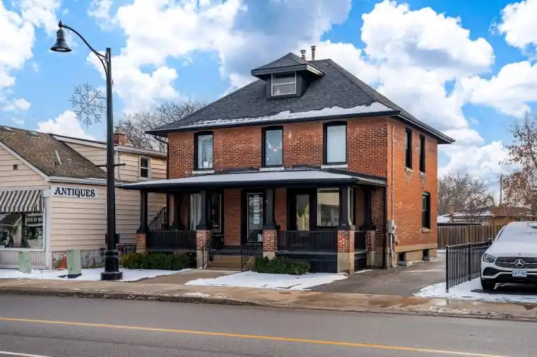 Freestanding high-profile commercial building with ample parking & excellent exposure. Great street presence and visibility along busy Niagara Stone Road, and from the Four Mile Creek intersection. Main-floor office or retail space with access to the basement, as well as front and back doors and provides a 2-piece bathroom and lovely covered front porch with charming bay windows. Upper unit is currently a 1-2 bedroom apartment, where the current tenant is paying $1716.87/month and is open to staying. Updates include windows, driveway and parking lot paving, central air, and basement waterproofing.