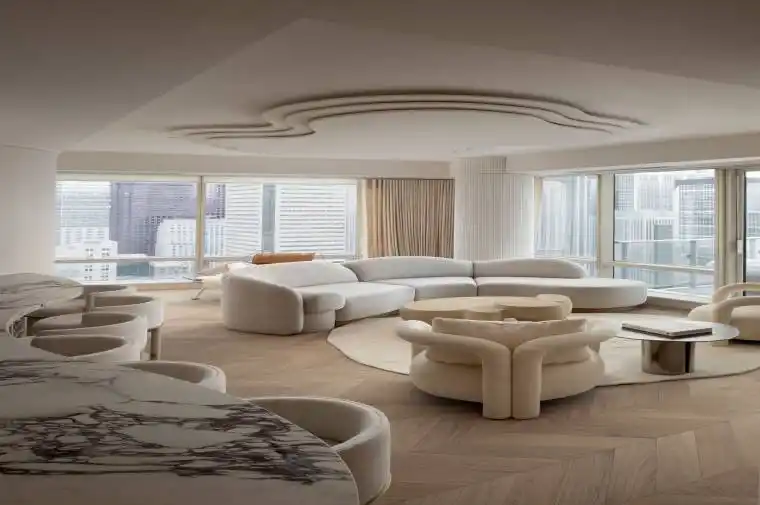 A truly one-of-a-kind Condo Suite at the prestigious Shangri-La Residences Toronto. Spanning over 1,600 sq. ft., this fully reimagined residence has undergone a complete, designer-led transformation, with every finish, fixture, and architectural detail custom crafted exclusively for this suite. The interiors are defined by soft sculptural forms, flowing curves, arched transitions, bespoke millwork, and wide-plank herringbone flooring, creating an exceptional sense of warmth rarely found in condominium living. Expansive floor-to-ceiling windows frame unobstructed panoramic city views while flooding the home with natural light throughout the day. The residence is anchored by a statement Italian Boffi kitchen featuring a dramatic marble waterfall island, integrated high-end appliances, custom lighting, and refined detailing throughout. Each bedroom offers a serene retreat with spa-inspired ensuite bathrooms, while private outdoor spaces with CN Tower and City views further enhance the living experience. A rare opportunity to own a bespoke architectural residence within one of Toronto’s most iconic addresses, offering refined five-star living at its absolute finest.