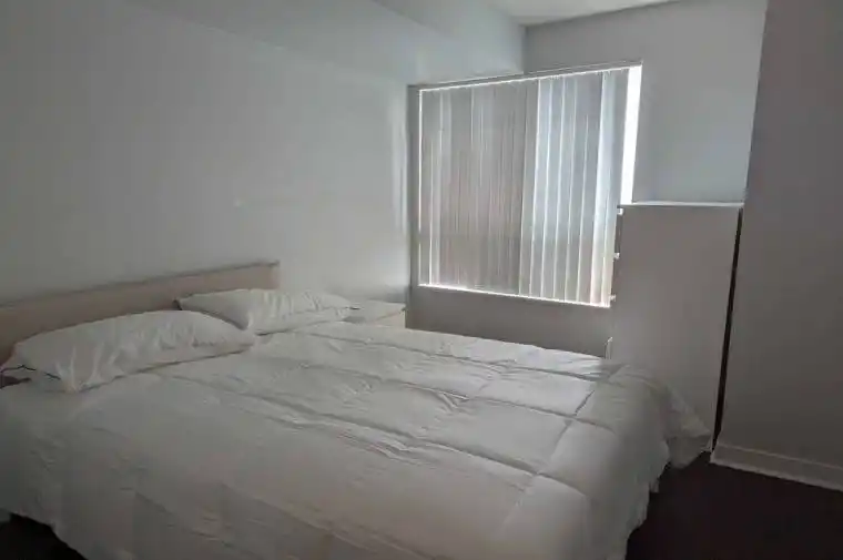 SHARED CONDO WITH SINGLE MALE. Furnished one bedroom with double bed, dresser with 6 drawers, desk, night table, floor lamp, and small desk, with private bathroom across the hall which is less than 4 feet from the door. Property shared with owner who is MALE and lives full time and works from home mostly. Will have own dishes & cutlery to use as well, pots & pans if required can be procured. Half of fridge and part of freezer for use. Can use stove, microwave, as well as washer & dryer when needed. All utilities included in the rent, heat, central air, electricity, water, as well as internet (unlimited) and cable tv (tv can also be provided). No pets allowed, you can use common area, parking will have to be rented separately within the building. Best to just bring clothes & a computer if you need and that’s all. Building has small gym, pool and billiard room for your use as well if you wish. TTC at door step, but the LRT has shut down, so subway access is no longer as easy as it once was.