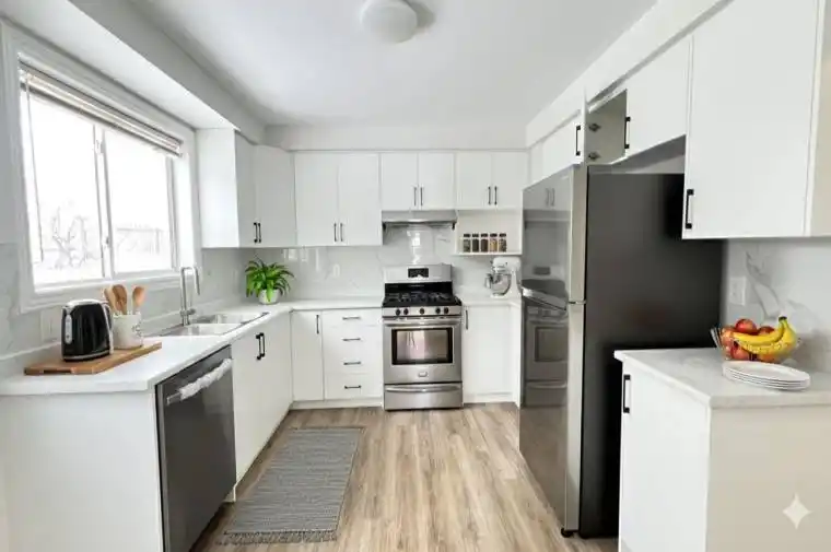 Rarely offered entire corner-unit home for lease! This stunning 4-bedroom residence at 26 Edenridge Drive offers 1,458 sq. ft. of bright, above-grade living space on a premium 36′ x 118′ lot with 4 parking spaces. The main floor features a sun-drenched foyer, a convenient powder room, and a formal dining area leading to an upgraded kitchen with new appliances and sleek cabinetry. Brand-new luxury vinyl plank flooring and modern lighting flow throughout the massive living and family room areas. Upstairs, discover four spacious bedrooms with ample closets and a full family bathroom. The basement includes an en-suite laundry and extensive storage to keep your home clutter-free. Enjoy a private, fully fenced backyard in a prime Brampton location near Bramalea and Queen, just steps from top-rated schools, parks, transit, and places of worship. Complete with a dishwasher and central vacuum, this move-in-ready home is perfect for families seeking comfort and convenience in a sought-after neighbourhood.
