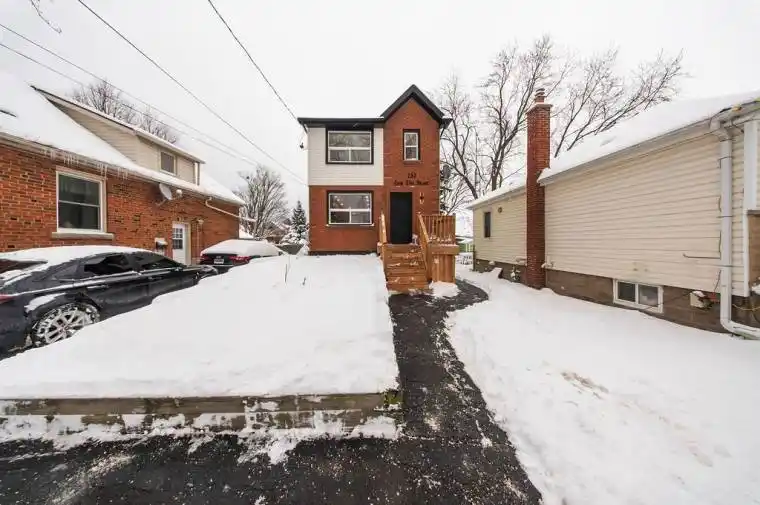 A beautifully reimagined two storey brick and vinyl residence where craftsmanship and thoughtful design meet complete peace of mind. This home has undergone an extensive transformation featuring upgraded 200 amp service with two separate hydro meters, ESA approved electrical and entirely new plumbing throughout. A private side entrance offers seamless potential for a refined in law or income suite. Inside, the layout is both elegant and versatile with three plus one bedrooms, two full kitchens and two dedicated laundry areas serving the main floor and lower level. Every surface feels new and intentional, from the wide plank vinyl flooring to the crisp baseboards and casings, all complemented by fresh paint, custom feature walls and an abundance of brand new windows with clean exterior capping that flood the home with natural light. The kitchens are true standouts, finished with contemporary cabinetry, new appliances and a striking main floor kitchen anchored by quartz countertops and a designer backsplash. Outdoors, the home continues to impress with a newly built front porch, a brand new deck and a fully fenced backyard ideal for both entertaining and everyday enjoyment. Turnkey, polished and impeccably maintained, this home shows AAA and offers a rare blend of modern upgrades, flexibility and timeless appeal.