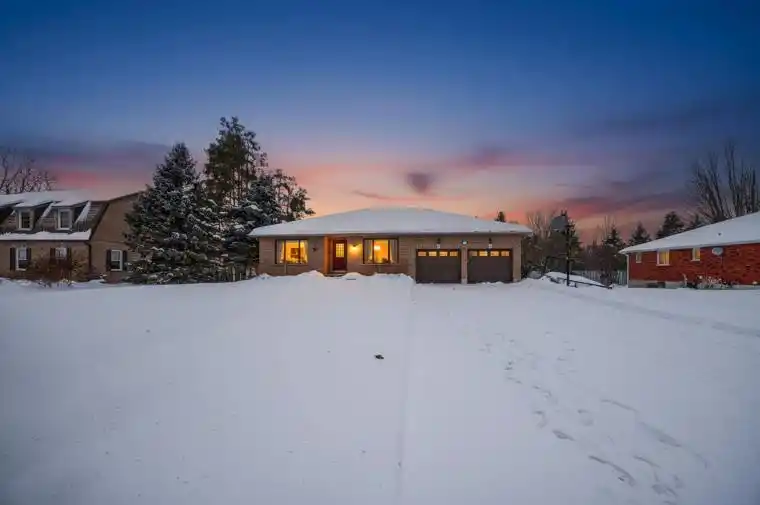 Snow Valley! Great potential in this nice sized all brick ranch bungalow on a sprawling 100 x 200 ft lot. Good size kitchen & breakfast area walk out to decking and spacious backyard. Bright living room overlooking front grounds. Primary bedroom with walk thru closet and 3 piece ensuite. 2 other spacious bedrooms on main level & full bathroom. Mudroom with inside entrance from double garage to the kitchen. Lower level offers ability to have an extra 2 bedrooms if needed, or gym/office area. Rec room is huge and offers a warm cottage feeling. Some rooms have been virtually staged