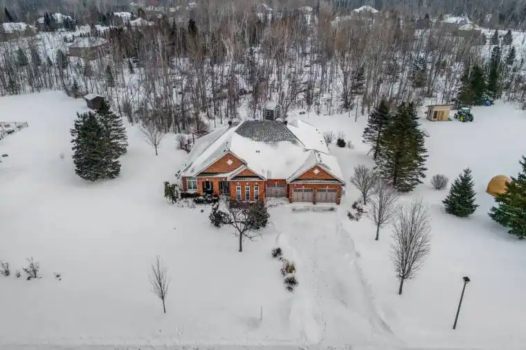 Situated on a professionally landscaped and exceptionally private 1.75 acre lot backing onto a serene woodland setting, this remarkable residence offers a rare combination of sophistication, comfort, and natural beauty. Mature trees and lush greenery create a peaceful backdrop, providing both privacy and a true sense of retreat.The main floor is bathed in natural light, with oversized windows and French doors that enhance the home’s bright, airy atmosphere. A thoughtfully designed floor plan offers multiple, well proportioned living spaces, perfectly suited for elegant entertaining, family gatherings, or relaxed everyday living. The seamless connection between indoor and outdoor spaces allows the surrounding landscape to become an extension of the home itself. Step outside to a custom Trex deck featuring refined slate inlays and multiple seating areas, ideal for hosting, dining, or simply enjoying the tranquil views of the wooded setting. The outdoor space is designed for both beauty and functionality, offering privacy without sacrificing openness. Inside, the home showcases sun filled interiors, soaring ceiling heights, and a refined flow that emphasizes space and comfort throughout. Additional premium features include a triple car garage, an expansive double driveway accommodating up to eight vehicles, a Generac backup power system for peace of mind, an inground lawn sprinkler system, and a selection of highend finishes and systems typically reserved for the finest estate homes. This property delivers an exceptional lifestyle defined by quality, privacy, and timeless appeal.