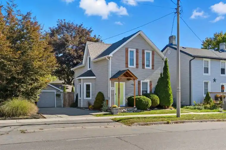 Welcome to 28 Mount Pleasant Street, a beautifully updated home in Brantford’s sought-after West End community. This charming detached property offers four bedrooms, two stylish bathrooms, and a bright open-concept layout perfect for families or professionals. The kitchen features updated countertops, ceramic tile, and a breakfast bar, while the living and dining areas are filled with natural light from large bay windows. Outside, enjoy a private backyard oasis with a covered patio and pond ideal for relaxing or entertaining. The home also includes a concrete driveway with parking for up to three vehicles and a detached garage with hydro and a secondary roll-up door, providing excellent storage or hobby space. With thoughtful updates throughout and close proximity to schools, parks, shopping, and transit, this move-in-ready home combines comfort, functionality, and charm in a prime Brantford location.