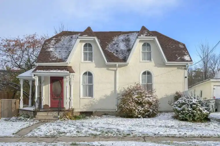 Over 1700 square feet of above-grade living space, and all of it ready for someone with vision. From the street, 222 Ellen Street looks like a charming century home… then you step inside and realize just how much house you’re working with. It’s the kind of place where you can actually shape things the way you want instead of settling for someone else’s choices. And all that potential sits in a small town that still feels like a small town. In Parkhill, kids ride their bikes to the corner store, neighbours wave from the porch, and Friday night means wings at Winnie’s Roadhouse followed by a scoop from Lickity Split. You can walk to grab groceries, duck into the LCBO, browse local shops and galleries, and still make it home in time for the sunset on your wraparound porch. Inside, you’ll find high ceilings, original hardwood, arched doorways, and a spacious kitchen with two dining areas. The upstairs loft adds even more usable space for a third bedroom, office, studio, or kids’ zone. Some updates have already been tackled for you – newer roof (2018), copper wiring, furnace and AC (2021), and many updated windows – while the rest is a chance to make it your own.Outside, there’s plenty of yard, mature trees, a detached garage or workshop, and easy access through the mudroom. if you’ve been looking for space, character, and a home where your ideas can actually come to life, 222 Ellen Street is exactly that. Note: some photos have been digitally staged.