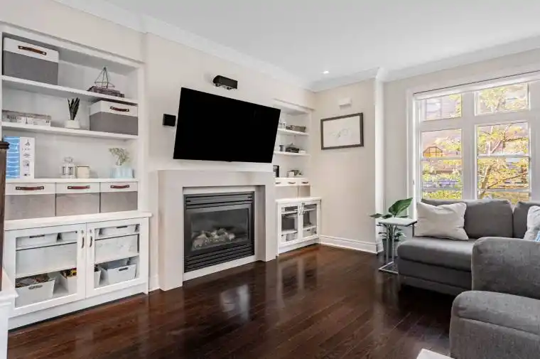 Rarely offered 2,045 Sqft end unit Freehold Townhome in the heart of Mississauga’s desirable Applewood community, combining elegant design, natural light, and smart home convenience. This 3 Storey residence offers an open concept layout with hardwood floors, crown moulding, and a gas fireplace that creates a warm, inviting main living space. The designer kitchen features granite countertops, a gas stove, extended pantry storage, reverse-osmosis water filtration and water softener, and a spacious island, leading to a balcony terrace with natural gas BBQ hookup and ample outdoor space, perfect for entertaining. Upstairs, the primary suite is a true retreat with a large walkthrough closet with built-in shelving, private balcony, and a luxurious 5 Piece ensuite boasting double sinks, upgraded fixtures, and quality window blinds. Two additional bedrooms provide ample space for family or guests, complimented by a full bathroom and convenient laundry room with built-in storage. The ground floor welcomes you with a heated foyer floor, 2 Piece powder room, and versatile den ideal for a home office, gym or 4th Bedroom, plus direct access to an attached 2 Car garage with storage space. Smart home features include Nest doorbell camera, garage opener, smart light switches, Nest thermostat, built-in surround sound system, dimmer switches and potlights. Additional upgrades include a new Air Handler (2018) and smoke detectors on every level. Situated in a quiet enclave facing the courtyard, this bright corner home offers privacy and tranquility while remaining close to every convenience. Longo’s, Starbucks, Sherway Gardens, Square One, parks, golf, schools and major highways + transit routes are all minutes away. A rare combination of location, functionality, and sophistication, this is urban living at its finest in one of Mississauga’s most coveted communities.