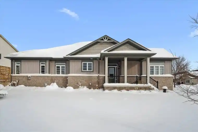 Welcome to 26 Middleton Street in Fergus, a beautifully upgraded freehold end-unit bungalow townhome offering stylish, low-maintenance living. This two-bedroom, two-bath home showcases quality finishes and thoughtful design throughout. The main level features engineered hardwood flooring, a coffered ceiling, upgraded interior doors, pot lights with dimmer switches, and a cozy gas fireplace. The kitchen has been refreshed with quartz countertops, an updated backsplash, and a new sink and faucet. The spacious bedrooms provide comfortable and functional living, with the primary suite highlighted by an upgraded ensuite featuring heated flooring. Additional features include main-floor laundry, a WiFi-enabled thermostat, water filtration system, and basement rough-in plumbing for a future bathroom. The end-unit layout offers added privacy and natural light. Outside, enjoy a deck and professional landscaping, while the garage includes a door opener and built-in shelving for extra storage. A move-in-ready bungalow with extensive upgrades in a desirable Fergus location, this home is a standout opportunity.