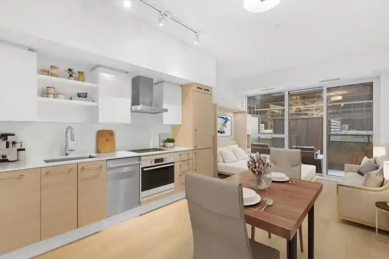 Stylish and fully refreshed studio suite in the sought-after DNA3 Condos, ideally located in the heart of King West. This bright and functional unit features floor-to-ceiling windows, brand new wide-plank vinyl flooring, fresh paint throughout, and new modern blinds. The upgraded kitchen is equipped with a new Fulgor Milano wall oven and cooktop, offering a sleek and contemporary finish. Enjoy seamless indoor-outdoor living with a private terrace, perfect for entertaining. The building offers ultimate convenience with grocery and retail amenities, including Tim Hortons, located right at street level. Public transit is at your doorstep with quick access to major highways, Liberty Village, and the downtown core. Well-managed building with low maintenance fees. An ideal opportunity for first-time buyers, investors, or urban professionals seeking a premium King West lifestyle.