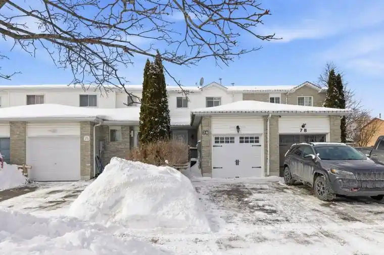 **Please note Open house is cancelled**Welcome to 76 Bushford Street, a beautifully updated freehold townhome in the heart of Courtice with no maintenance fees! This move-in-ready home is an ideal step up from renting or condo living, offering space, privacy, and thoughtful upgrades throughout. The main floor features an open, functional layout perfect for everyday living. The renovated kitchen (2020) showcases warm butcher block countertops, stainless steel appliances, and a gas stove, flowing seamlessly into the bright living area with durable updated flooring. A walk-out (patio door 2021) leads directly to the private, fully fenced backyard, ideal for entertaining, summer BBQs, or relaxing on the deck with pergola (2019). Upstairs, you’ll find three generous bedrooms with brand new carpet (2026), updated stair railings (2026), and tasteful finishing details that elevate the space. The renovated main bathroom offers both style and function. The finished basement adds valuable living space and includes a full 3-piece bathroom, a huge bonus for growing families or busy mornings. Outside, enjoy your own garage (updated garage door 2023) updated driveway and front walkway stone (2023), and a low-maintenance yard with garden space. Located minutes from schools, parks, walking trails, shopping, and the Courtice Community Complex with pool, gym, and outdoor skating. A true hidden gem in a family-friendly neighbourhood, this home is ready for you to simply move in and enjoy.