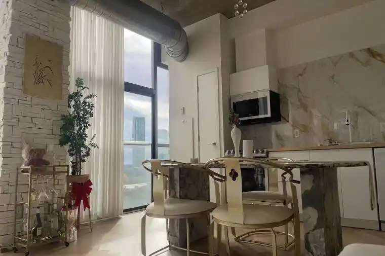 Luxury downtown living at Sixty Loft. This sun-filled 1000+ Sqft unit overlooking the bustling, vibrant neighbourhood of King&Bathurst is everything you need. Fully furnished, tasteful designer interior. Unit can be used as a studio for various businesses as well. Perfect for professionals and couples. Book a showing today so you don’t miss out! Parking is available for $100/month.