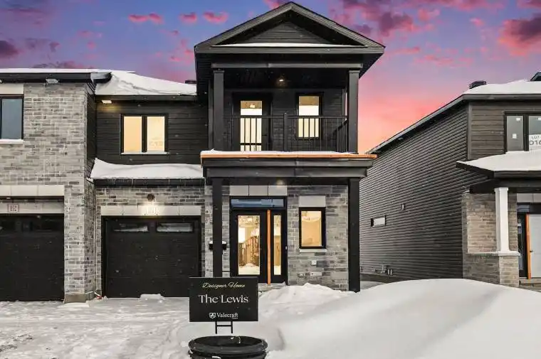 Welcome to the Lewis – a stunning End Unit townhome by Valecraft Homes, located in the highly sought-after Shea Village community in Stittsville. This beautifully designed home offers modern finishes with exceptional functionality, perfect for families, professionals, and anyone seeking stylish, turnkey living. Step inside to an inviting open-concept layout featuring rich hardwood floors throughout the main level and a hardwood staircase leading to the second floor. The bright kitchen is a true showpiece – offering an abundance of cabinetry, high-quality finishes and a large island ideal for cooking, hosting, and gathering. Upstairs, you’ll find generously sized bedrooms, including a spacious primary suite complete with Ensuite and its very own private balcony. The lower level adds even more value with a fully finished rec room with fireplace, perfect for a home theatre, gym, playroom, or office. Located in one of Stittsville’s most vibrant new communities, the Lewis End Unit offers modern comfort, thoughtful design, and outstanding craftsmanship – all in a family-friendly neighbourhood close to parks, schools, transit, and everyday conveniences. The perfect blend of style, space, and quality – welcome home.