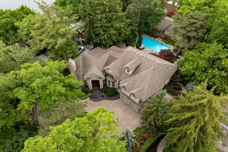 Attractive VTB available for up to 2 years for qualified buyers. Welcome to this exceptional luxury estate in Shoreacres, steps from the lake – offering over 9,000 sqft of beautifully designed living space. Custom built with impressive curb appeal and meticulous attention to detail. this stunning home features 6 spacious bedrooms, each with its own ensuite, 7 full bathrooms, plus a main floor powder room. Rich hardwood flooring runs throughout the entire home, including the full in-law suite with a private entrance, laundry, and living area. The main floor offers a formal living room, dining room, and a warm family room with two gas fireplaces. A sun-soaked kitchen opens into a bright sunroom and walkout to the backyard- ideal for morning coffee or hosting poolside gatherings. The chef’s kitchen includes a large eat-at island, gas cooktop, double wall ovens, oversized fridge, and a built-in bar area with sink. The south-facing primary suite has lake views, gas fireplace, a spa-like ensuite, and grand walk-in closet. The nearly 3,200 sqft finished basement includes a bedroom with ensuite, bar, wine cellar, theatre room, gym, and ample space for entertaining. The professionally landscaped backyard is a private resort, with a saltwater pool, waterfall, cabana, built-in BBQ, and multiple lounge areas. Elegant, timeless, and serene-this is a rare opportunity to live steps from the lake in one of Burlington’s most coveted neighbourhoods. Luxury Certified.