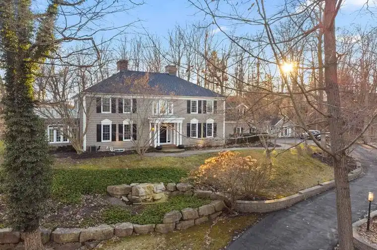 Camelot Hill Estate: A custom-built Georgian Colonial set on 1.2 acres of manicured, tree-lined grounds overlooking winding Lakeshore Road West, just outside the lakeside town of Port Colborne. With over 3,700 sq ft of finished living space, the home commands a striking hillside presence while offering privacy and a peaceful setting. The columned entrance opens to a grand foyer with a sweeping oak staircase, leading into formal living and dining rooms defined by classic architectural details. The main floor also features a private office, a bright Florida room with French doors to the terrace, and a comfortable family room-well suited for both everyday living and entertaining.The kitchen was updated in 2022 with new cabinetry and flooring, blending traditional style with modern function, and includes granite countertops, high-end appliances, and a breakfast area overlooking the grounds. Upstairs, there are 4-5 generous bedrooms and 2.5 updated bathrooms. Restored hardwood floors, two fireplaces, and abundant natural light highlight the home’s timeless character throughout.The lower level is unfinished, offering excellent potential to further expand the living space. Major updates include a new roof (2021), new windows and doors (2022), garage doors, lighting, and a new water system. A dedicated internet tower provides reliable high-speed connectivity.The landscaped grounds feature terraces, gardens, and a heated garden shed-ideal for relaxing, gathering, or creative use. Nearby lake access at Cedar Crest Road leads to sandy Camelot Beach and the shoreline of Lake Erie. 10187 Lakeshore Road is a rare estate offering a serene wooded setting, strong presence, and quick possession.
