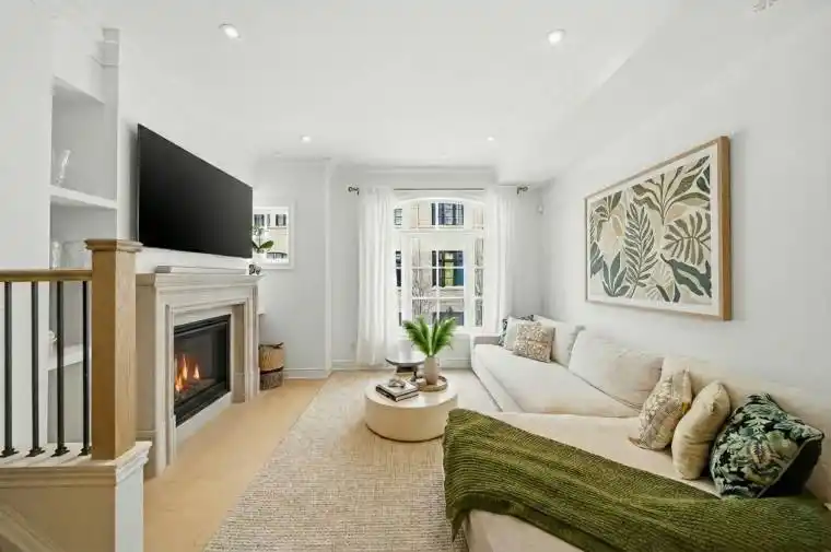 A refined luxury townhome by Dunpar Homes, nestled in the heart of vibrant Streetsville. This thoughtfully upgraded 3-bedroom, 2-bathroom residence delivers premium finishes, thoughtful design, and exceptional indoor-outdoor living in a prime, walkable location. The interior is bright and open, featuring soaring 9.5-foot ceilings and numerous skylights that flood the home with natural light. Wide plank hardwood flooring, smooth ceilings, LED pot lights, and solid oak stairs with iron pickets create an elegant and cohesive feel throughout. A natural gas fireplace with an upgraded Regency-style mantel and custom built-in shelving anchors the main living space, adding both warmth and functional design. The custom two-toned kitchen is a chef’s delight, finished with quartz counters, a waterfall island, crown mouldings, premium stainless-steel appliances, and elevated cabinetry details. Bathrooms feature luxurious marble counters. Additional upgrades include a central steam humidifier and an electric vehicle charger rough-in. The primary suite functions as a private retreat, complete with crown moulding, a walkout to a private balcony, and an oversized walk-in closet with a fully integrated custom organization system. Outside, an expansive south-facing rooftop terrace offers a gas BBQ line, water hookup, and a pergola-ideal for effortless, sun-filled entertaining. Enjoy an unparalleled level of convenience. The home is steps to GO transit, dining, trails, parks, top-rated schools, a recreation centre, and charming village shops, all with quick access to major highways. Set within an exclusive, family-friendly community known for its timeless architecture and modern design, this townhome offers the perfect blend of luxury, convenience, and low-maintenance living. Extensively upgraded, generously sized, and offering exceptional value, this turnkey home delivers luxury without compromise.