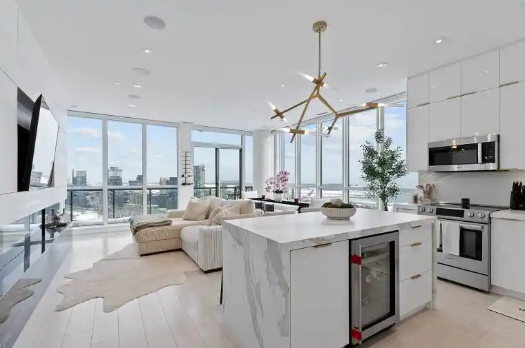 Experience elevated penthouse living in this one-of-a-kind 2+1 bedroom, 2 bathroom residence offering an expansive 1,855 sq ft of refined interior space and exceptional outdoor living. This stunning corner suite features floor-to-ceiling windows, an open-concept layout designed for entertaining, and breathtaking east-facing views of the CN Tower and Lake Ontario from the private balcony. A true standout, the private rooftop terrace offers an extraordinary retreat with southwest exposure, spectacular sunset views, and additional water vistas – perfect for hosting or relaxing above the city.The thoughtfully designed interior showcases contemporary finishes, a modern chef’s kitchen with high-end appliances, spacious bedrooms, built-in storage, and flexible den space. The primary suite features a walk-out to the balcony and a private ensuite. Rarely offered wellness features including a private infrared sauna and cold plunge elevate the home’s resort-like experience. Complete with parking, locker, and full-service building amenities, this exceptional residence offers sophisticated urban living at its finest. Ideally situated in the heart of Liberty Village, this residence offers the perfect balance of privacy and convenience – steps to premier dining, cafés, fitness studios, and waterfront trails, with seamless access to Downtown Toronto, Billy Bishop Airport, major highways, and key venues for the upcoming FIFA World Cup.