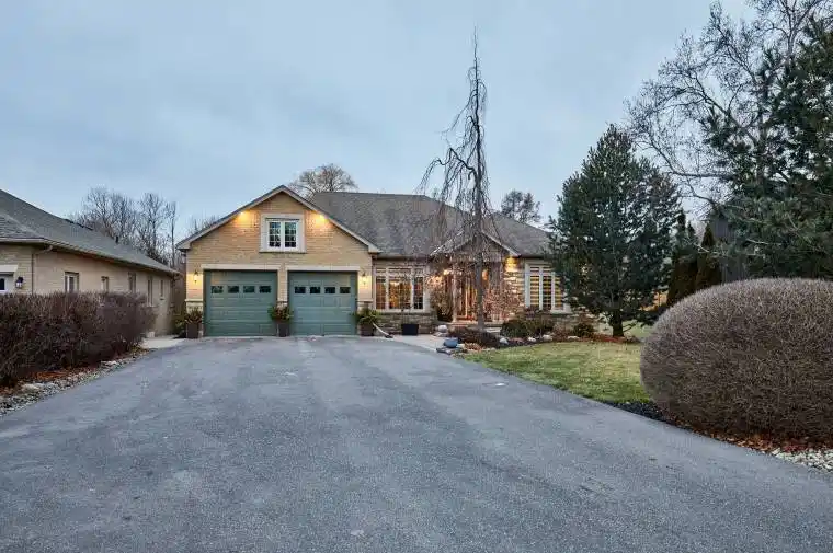 Updated three-bedroom bungalow on a 1-acre lot, wooded area, fenced garden for added privacy and tranquility. Hardwood floors in the main living areas complement elegant travertine floors in the kitchen, eating area, and hallways. The luxurious kitchen features a spacious center island, perfect for meal prep and casual dining. The finished basement offers even more space to enjoy. It includes two additional bedrooms, a brand-new bathroom, and two extra rooms that could serve as offices, studios, or guest rooms. The expansive recreation room is ideal for family gatherings, and the cool room adds extra storage for your wine collection or pantry needs. Other highlights include a new furnace (2024), air cleaner system, interlock patio, driveway, and side entrance. Epoxy garage floor, two fireplaces, sprinkler system, five new appliances, and so much more!