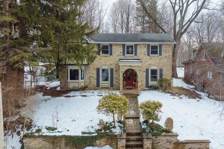 Set on an expansive, mature tree-lined city lot along the Thames River, this exceptional reclaimed-brick two-storey home offers a rare balance of privacy, nature, and everyday convenience. With almost 2500 sq ft above grade, this home is designed for both comfortable family living and effortless entertaining. The home features four bedrooms, including a special bonus space in the primary bedroom, three bathrooms, multiple living spaces including a main-floor family room and living room, and a finished lower level. Ample parking for up to ten vehicles adds flexibility for entertaining.The backyard is truly special – a private, retreat overlooking a forested ravine and the Thames River beyond. A three-season cabin with wood burning stove, creates a cozy year-round escape, while the generous patio provides the perfect setting for entertaining. Tucked away in a peaceful setting yet close to shopping, schools, and community amenities, this home also offers walking-distance access to nearby parks and scenic walking and biking trails. This is a quiet, nature-rich retreat without sacrificing urban convenience.Recent updates include a new furnace (2024) and roof replacement on the house and garage (2017).