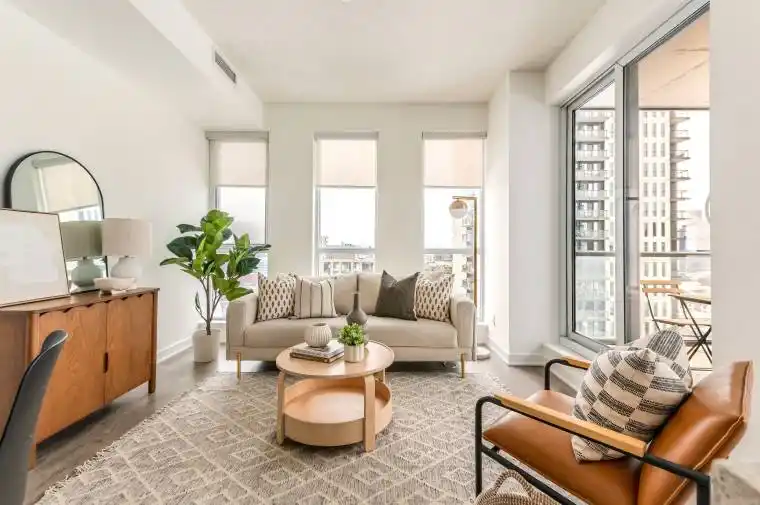 Bright corner suite on the 14th floor with south west exposure and open city views in the heart of Regent Park. This thoughtfully designed 1 bedroom, 1 bathroom home offers 691 sq ft plus a 59 sq ft balcony, with floor to ceiling windows that flood the space with natural light throughout the day.Functional open concept layout featuring a modern kitchen with island, granite countertops, stainless steel appliances, and engineered wood floors. The living and dining areas connect seamlessly, creating a comfortable space for everyday living and entertaining. Spacious bedroom, full bathroom, and a welcoming foyer with storage and coat closet add to the suite’s practicality.Well maintained and move in ready with in suite stacked washer and dryer, window blinds, all existing light fixtures, one parking space, and one locker included.Located at One Park Place, residents enjoy exceptional amenities including a large fitness centre, yoga and pilates studio, squash courts, half court basketball gym, party room, billiards room, media room, rooftop terrace with BBQ areas and gardening plots, guest suites, visitor parking, bike storage, 24 hour concierge, and security.Prime Regent Park location steps to parks, cafés, community spaces, groceries, TTC, and easy access to downtown. Ideal opportunity for first time buyers, investors, or anyone seeking a bright, efficient condo in a vibrant and connected neighbourhood.Maintenance fees include water, gas for heating, building insurance, and common elements.