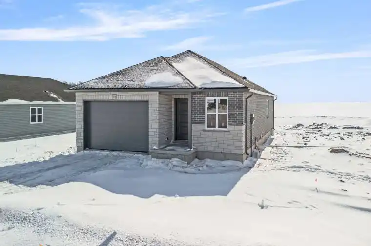 Welcome to 115 Victoria Avenue West in Crediton, featuring the Alice Model by Robinson Carpentry. This thoughtfully designed 1,399 sq ft bungalow offers a solid brick exterior and a well-planned interior layout perfect for comfortable living. The main floor includes two bedrooms, highlighted by a spacious primary suite complete with a walk-in closet and a private four-piece ensuite. A second four-piece bathroom serves the additional bedroom and guests. Just off the entryway, a versatile space offers the ideal space for a home office, study or additional bedroom. The open-concept kitchen, dining, and living areas create a bright and inviting space for everyday living and entertaining. Additional conveniences include main floor laundry and a full, unfinished basement with potential for a large recreation room, an additional bedroom, and a roughed-in three-piece bathroom offering excellent flexibility for future development. Experience quality craftsmanship and smart design in this new build by Robinson Carpentry.