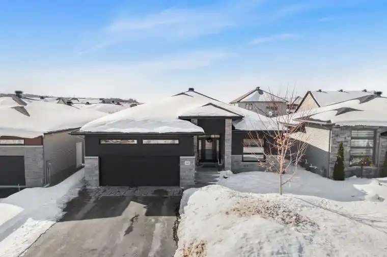 Welcome to 61 Granite Street. Built in 2020, this custom REMATEX 1,677 sqft bungalow home features 4 bedrooms and 3 bathrooms with a double car garage. Located walking distance from parks & schools in a prestigious & family oriented street of Morris Village while being ONLY 25 minutes from Ottawa. Main level featuring high-end finishes throughout; custom entrance designer gourmet kitchen with up to ceilings cabinets and 7’6”ft quartz island; luxury tile floor to ceiling gas fireplace in living room; Custom wood work throughout; high end ceramic & hardwood floors throughout; huge primary bedroom with walk in closet & modern 5 piece ensuite bathroom. The fully finished basement featuring a family room with convenient electric fireplace, two large bedrooms, modern a full bathroom and plenty of storage space. Backyard with quality & premium PVC fencing; Custom interlock & gazebo; beautiful & private 16′ x 11’2” deck leading to the BRAND NEW Athabascan Swim Spa & All Weather Pool (2024). FEATURING; Interlock installed along the driveway, along side the house & around back including under the gazebo(2024); Custom Barnwood throughout installed by Tim Holland Custom Wood Work(2024); Custom vanity & Quartz installed in main bathroom installed by Potvin Construction; Quartz added in ensuite bathroom (2024); Ecobee Pro Thermostat; Humidifier installed directly on furnace (2024); 3 outdoor rings cameras; Upgraded Heat vents throughout main floor; Gas fireplace on main floor & electric fireplace in the basement; Custom BlindsToGo throughout, Insulated Garage, LG Washer & Dryer (2023), Driveway sealed(Aug. 2025), 200AMP. Meticulously maintained. BOOK YOUR PRIVATE SHOWING TODAY!!!!